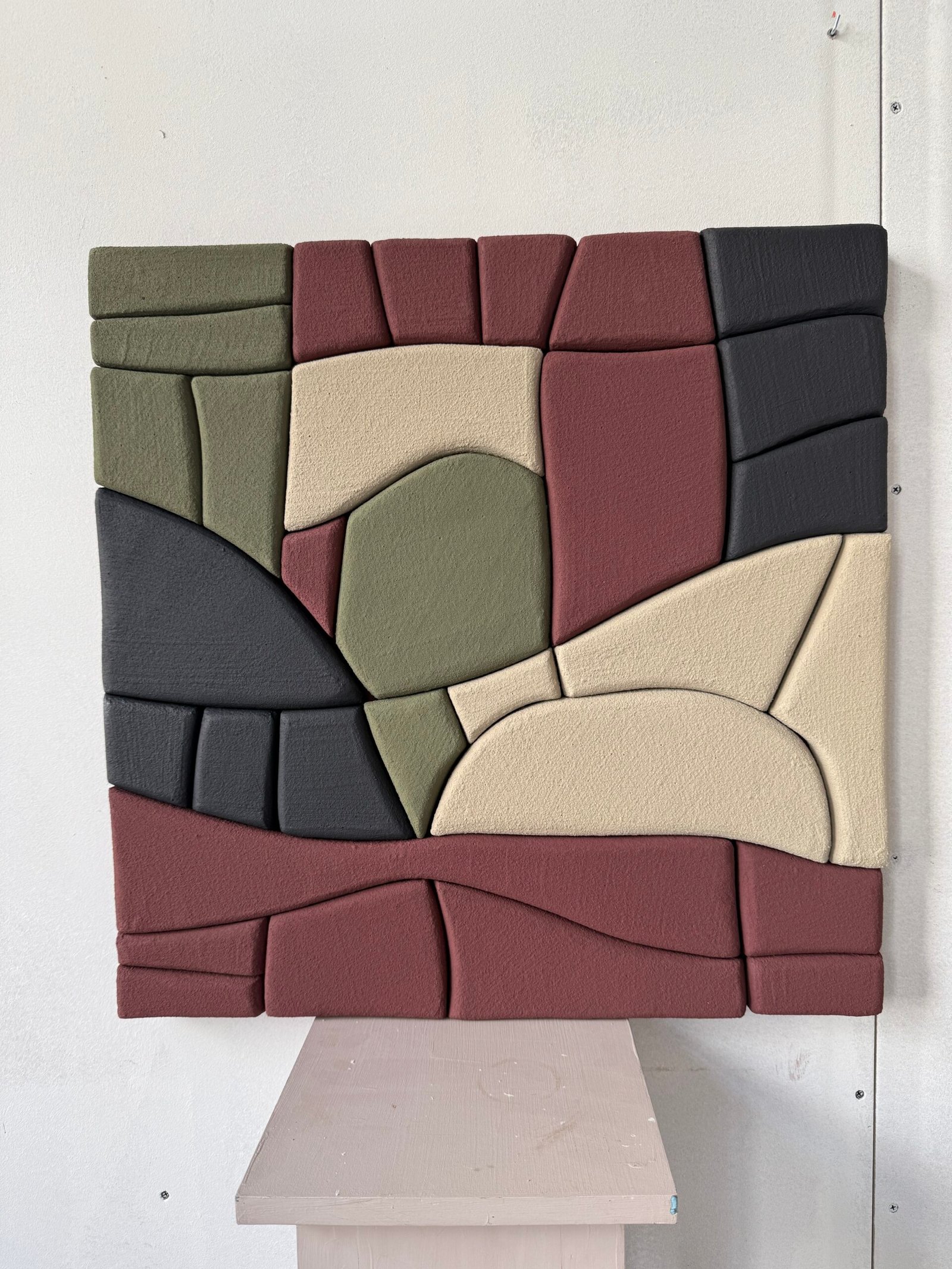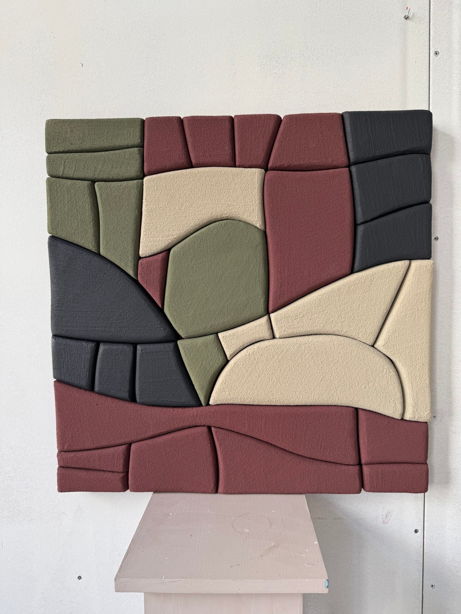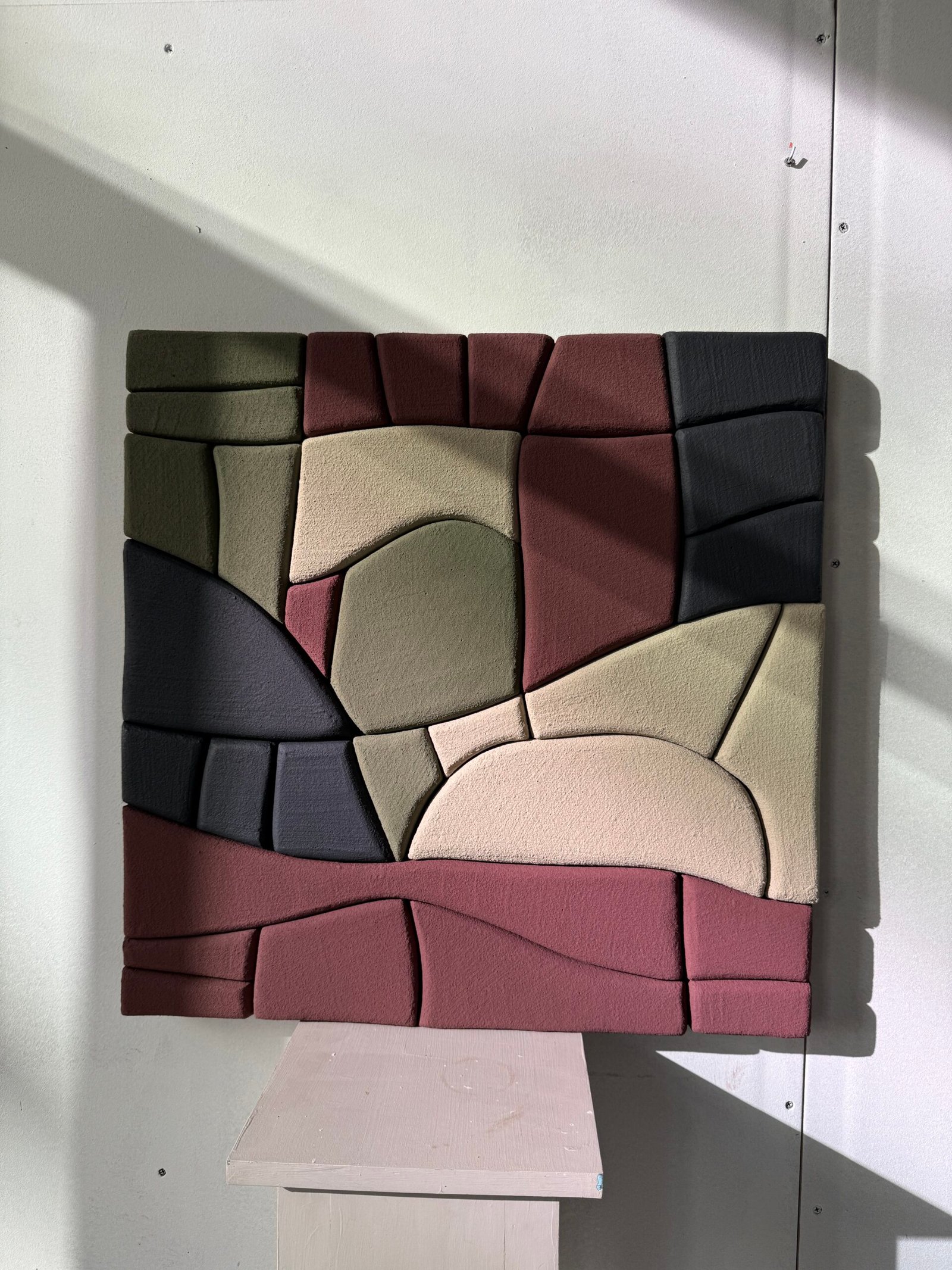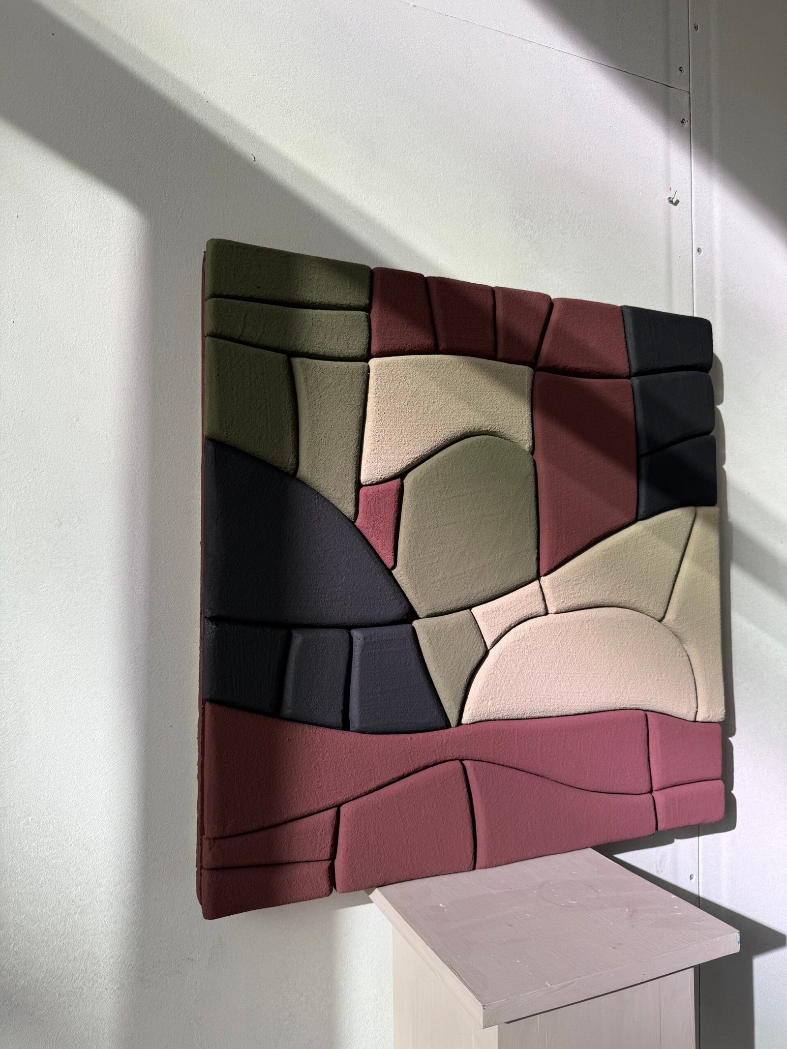 Each piece is handcrafted using upcycled polystyrene (construction waste) and coated with water-based natural marble plaster. This technique creates rich texture, depth, and dimension — while prioritizing both safety and sustainability.