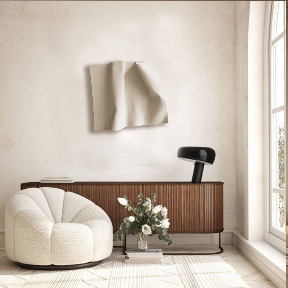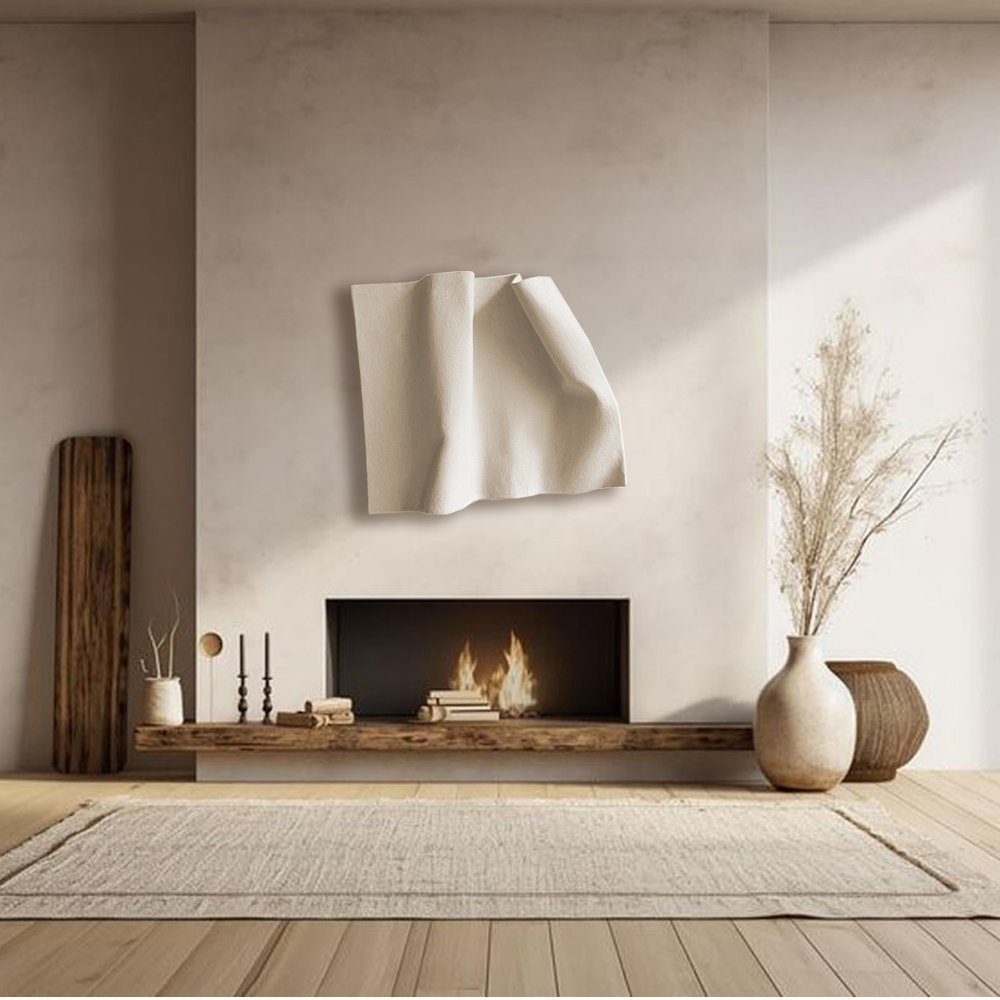 This modern 3D wall sculpture, inspired by the delicate movement of draped fabric and paper folds, is shown here in Off White. However, I can create it in any color you prefer. Just send me a message with your desired shade and size!